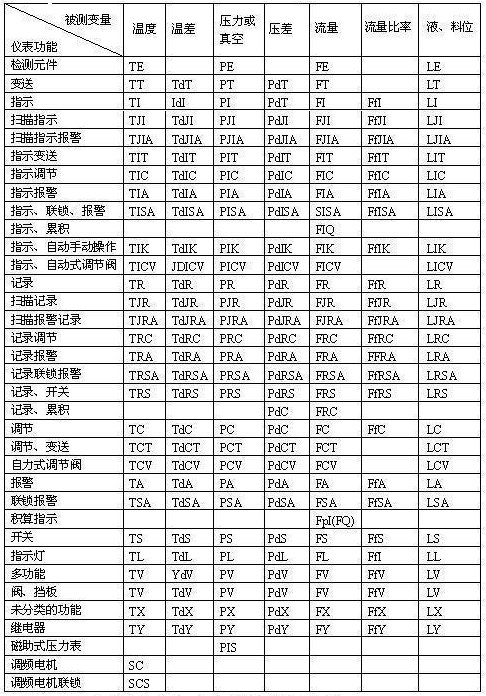 | 被測變量和儀表功能的字母代號 |
